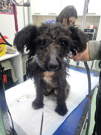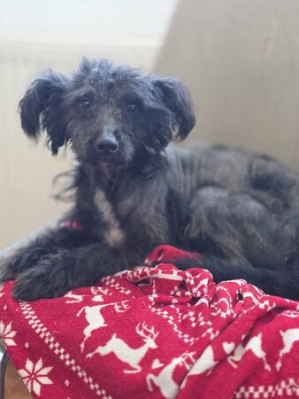 - hatte bei ihrer Ankunft im Tierheim eine schlimme Hautkrankheit